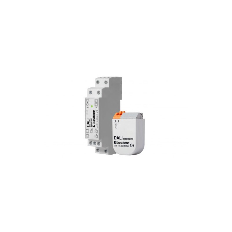 Der DALI Sequencer ermöglicht einen automatischen zeitbasierten Ablauf von Befehlsfolgen. 4 verschiedene dynamische Szenenabfolgen oder benutzerdefinierte Befehlsfolgen können als Sequenz definiert werden. Das Starten und Stoppen der aktiven Sequenz erfolgt über Dali Befehle. Gehäusevarianten für Hutschienenmontage und Dose stehen zur Verfügung.