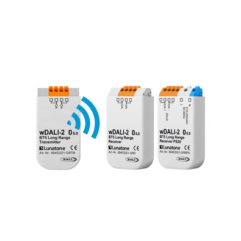 Modul zur drahtlosen Anbindung von räumlich getrennten DALI Lasten an ein DALI System mit BT5 Long Range. Der Transmitter übermittelt per Funk DALI Befehle aus dem DALI System an einen oder mehrere Receiver. Der Empäfnger ist mit oder ohne integrierter DALI Busversorgung erhältlich. Einfache Konfiguration mit DALI Cockpit Software. Die Geräte im Subkreis sind über broadcast oder einer zugewiesenen Gruppe steuerbar.