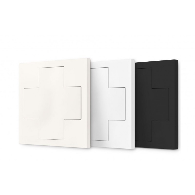 Tastermodul mit vier individuell konfigurierbaren Tasten. Mit der DALI Cockpit Software oder auch mittels eines NFC-fähigen Smartphones und der Lunatone NFC Konfigurations-App, können jeder Taste DALI Befehle zugewiesen werden. Neben den Standardfunktionen Dimmen, Schalten, Szenenaufruf, usw. werden auch Makros zur Steuerung der Farbtemperatur, dynamischer Szenen, Sequenzen und benutzerdefinierte Befehlslisten unterstützt. Die Bedientasten können mit verschiedenen Symbolen geliefert werden. Der NFC Switch Cross ist DALI-2 fähig und kann auch in den „event message mode“ gesetzt werden um mit Systemen wie zB.: WAGO und Beckhoff zu kommunizieren.