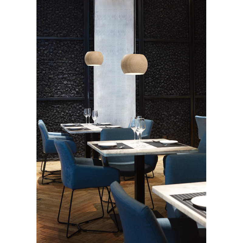 kugelförmige Pendelleuchte aus Holz